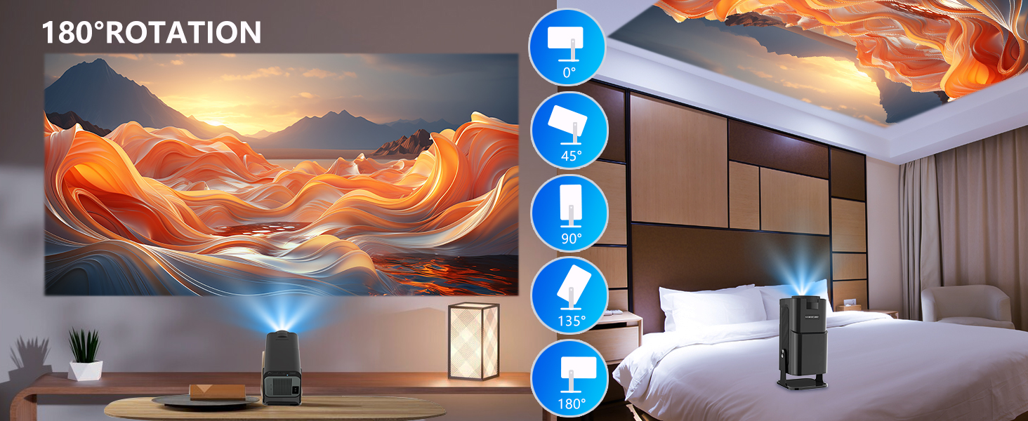 The projector uses industry-leading WiFi 6 technology, the transmission is faster and more stable, enjoy a smooth viewing and gaming experience! You can wireless screen mirroring through Miracast and Airplay