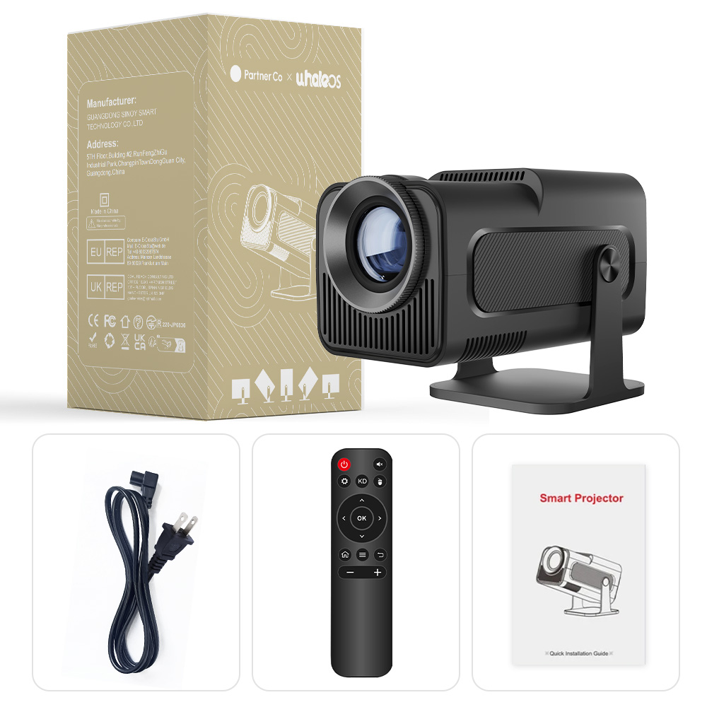 The portable projector provides a 30-150-inch projection display at a projection distance of 1-4 m, with a 16:9 aspect ratio, optimal viewing in both home theaters and outdoor movies!