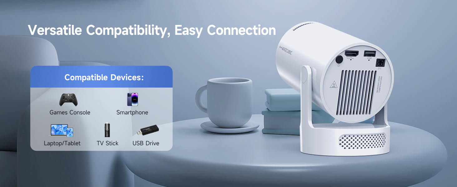 Designed for mobility, this projector weighs only 400g, making it an excellent solution for outdoor screenings, mobile presentations, and travel-friendly entertainment setups.