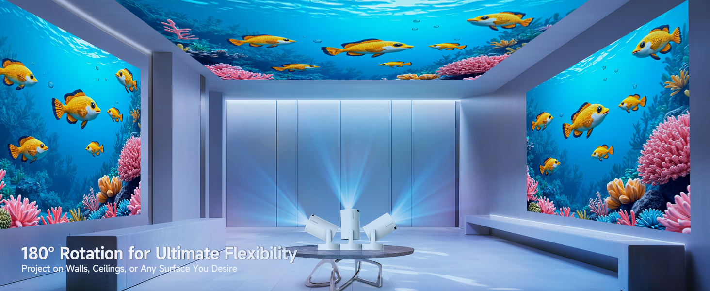 Supporting up to 90 degrees of vertical rotation, the projector allows effortless projection onto ceilings, walls, or other surfaces without additional mounting hardware—providing adaptable placement options for both home and professional environments.